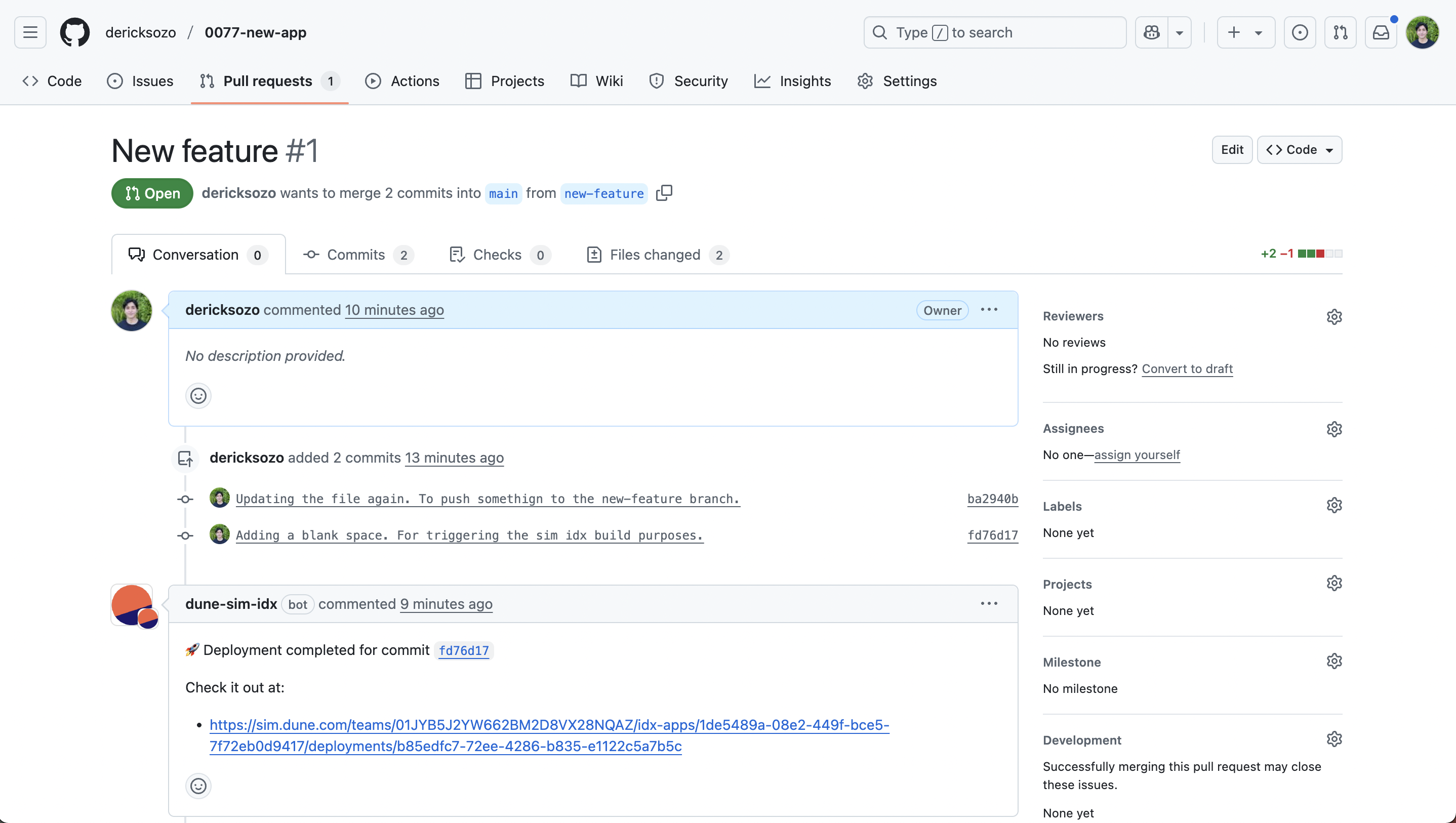 For a more structured development process, you can use PRs on GitHub to trigger preview deployments. This allows for code review and collaborative testing before merging changes into themain branch.